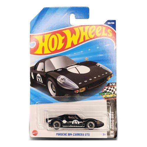 Este Porsche 904 Carrera GTS da linha Hot Wheels 2025 HW Race Day 3/10 é um tributo à era de ouro do automobilismo europeu. Com design clássico, pintura preta elegante e número 63 estampado nas laterais, essa miniatura combina história e esportividade com acabamento impecável.