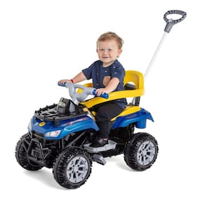 Habilidades Desenvolvidas: 1. Compreensão de causa e efeito: Os bebês aprendem que pedalar resulta no movimento do brinquedo, desenvolvendo essa compreensão fundamental. 2. Coordenação entre olhos e mãos: Segurar o guidão e pedalar requer sincronização entre a visão e os movimentos das mãos. 3. Coordenação entre olhos e pés: Pedalar ensina os bebês a coordenar os movimentos dos pés com o que veem à frente. 4. Coordenação motora grossa de braços e pernas: Pedalar exige movimentos coordenados dos braços e pernas, fortalecendo a coordenação motora grossa.