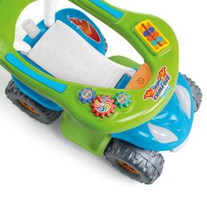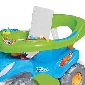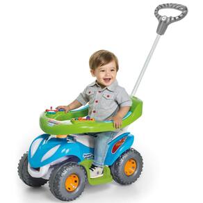 Benefícios do Produto: - Proteção e apoio para os pés removíveis. - Volante giratório para desenvolvimento da coordenação motora. - Buzina e assento que levanta para guardar acessórios. - Proteção anti-tombo para segurança extra. - Espaço para guardar brinquedos e peças didáticas. - Encaixe e desencaixe do empurrador com praticidade. - Estimula a coordenação entre olhos e pés. - Desenvolve a coordenação motora fina e grossa.