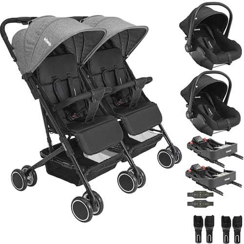 Carrinho de Bebê Kiddo Mascote Gêmeos com 2 Bebê Conforto Colinho e 2 Base para Carro ISOFIX Colinho