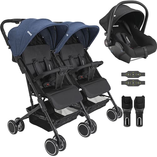 1 (um) Carrinho de Bebê Kiddo Mascote Gêmeos Marinho 1 (um) Bebê Conforto Colinho 1 (um) Conjunto de Conectores Kiddo Double 1 (um) Manual de instruções