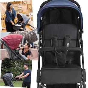 Indicado desde recém-nascidos até 15 kg por criança, o carrinho possui encosto reclinável em múltiplas posições, apoio de pernas articulável, capota retrátil com visor e proteção UV FPS 50+, além de estrutura em aço e fechamento central “one hand”. Conta ainda com cinto de segurança de 5 pontos, rodas com freio, tela traseira para ventilação interna e cesto porta-objetos com capacidade de até 2 kg. O sistema compacto facilita o armazenamento e o transporte quando fechado.