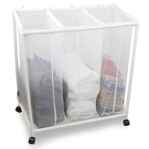 COR: Branco - Separe do seu jeito... roupas escuras, delicadas, bebe, etc. - Cestos confeccionados em tecido leve e resistente - Rodinhas para facilitar o movimento entre ambientes da sua casa. - Cestos com alcas podem ser removidos individualmente. - Estrutura em Aço leve e resistente. - Moderno, prático e fácil de usar. - Não precisa de ferramentas para montagem DIMENSÕES ESTRUTURA: 70cm de Comprimento 40 cm de Profundidade 87 cm de Altura Marca: Não Informado