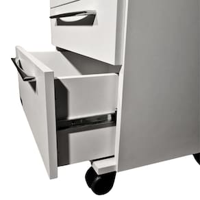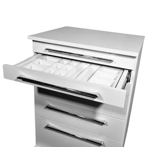 5 (cinco) gavetas. Ter cinco gavetas em uma mesa auxiliar oferece um excelente aproveitamento de espaço, permitindo a organização eficiente de materiais e documentos. As gavetas proporcionam fácil acesso a itens essenciais, mantendo o ambiente arrumado e funcional. Além disso, essa quantidade de compartimentos facilita a separação de diferentes categorias de objetos, promovendo maior praticidade no dia a dia e otimizando o tempo de trabalho em consultórios e clínicas.