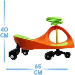 Muito divertido e simples de usar e não utiliza pilhas, baterias ou energia elétrica basta girar o volante de um lado pro outro, e o carrinho sai andando!