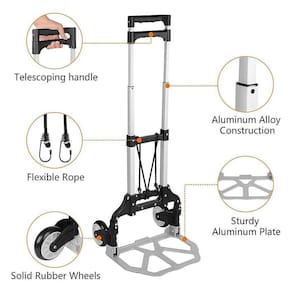 Carrinho Mão Dobrável Carga Bagagem Maleiro Compras Em Alumínio Alça Retrátil Portátil Acompanha Elástico Até 75kg