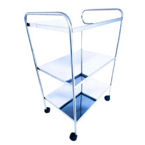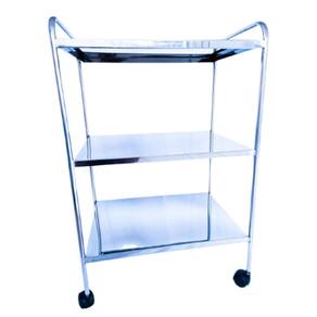 A mesa carrinho auxiliar possui estrutura em aço inox aisi 430 e foi desenvolvida especialmente para atender as necessidades dos profissionais da área da saúde e estética. Entretanto, pode ser utilizado para fins domésticos e escritórios. Composta por 03 prateleiras com medidas de 40x60cm, é o produto ideal para acomodar aparelhos e matérias diversos.