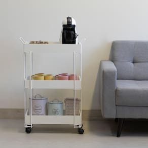 O Carrinho Multiuso 3 Andares White é muito mais do que um simples carrinho, é um item prático e versátil, perfeito para auxiliar na organização da sua casa. Com dimensões de 30 x 54 x 81 (CxLxA), este carrinho oferece espaço de armazenamento em três andares, possibilitando a organização de diversos itens de forma eficiente.