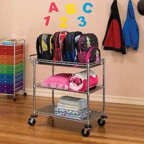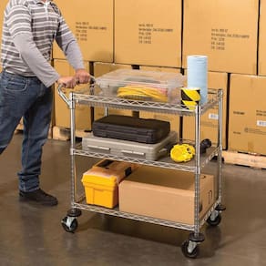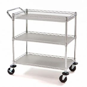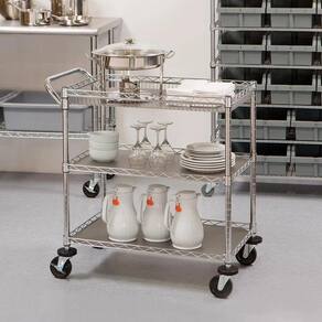 Carrinho aço multi utilitário 3 prateleiras com rodas e trava Carrinho 3 prateleiras Estrutura em aço; Inclui alça para manuseio; Inclui proteção acima das rodas de 10 cm para não danificar a parede; Ideal para hotéis,cozinha restaurante,comércio, etc ótima qualidade Aço zincado durável Rodas sólidas de l0,00 cm de amortecimento de pvc Cobertura de prateleiras em polipropileno para segurar pequenos itens menores Suporta até 272 kg de carga 1 cesta 2 prateleiras ajustáveis em 2,5 cm Medidas:45,72 cm l 86,36 cm p 87,63 a Ficha técnica - Largura: 86 - Materiais: Metal - Comprimento: 86 - Quantidade de prateleiras: 3 - Capacidade máxima de peso: 272 - Fonte do produto: China - Com freio: Não Ean: 856607004688
