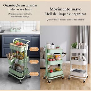 Mantenha sua casa e cozinha sempre organizadas e funcionais com o Carrinho Organizador Multiuso Com suas práticas prateleiras espaçosas, ele é perfeito para armazenar e organizar utensílios, alimentos, produtos de limpeza, toalhas, e muito mais. Seu design compacto e rodas deslizantes permitem movê-lo com facilidade por qualquer ambiente, aproveitando melhor cada espaço da sua casa.
