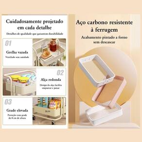 1 Unidade - Carrinho Organizador Multiuso com Prateleiras para Casa e Cozinha