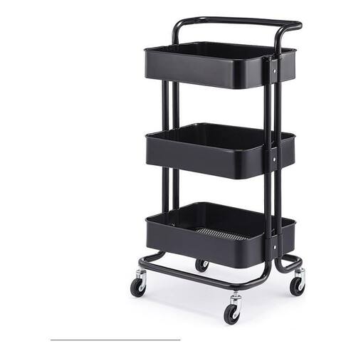 Carrinho Multiuso Organizador 3 Prateleira em Ferro com roda Cor: Preto Carrinho Organizador Multiuso com Prateleiras para Casa e Cozinha