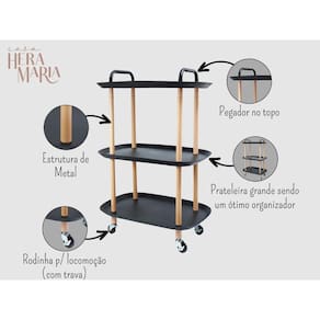 Carrinho multiuso organizador cozinha banheiro 3 prateleiras Cor: preto e bege Prático: ideal para arrumar objetos e otimizar seus espaços. Ele conta com 3 andares que deixam seus itens separados e sempre à vista, facilitando a organização do dia a dia. Com rodinhas e alças: as 4 rodas e as pegas laterais facilitam a movimentação do seu carrinho. Você consegue posicionar em qualquer canto da casa sem fazer esforço. Além disso, a alça ainda deixa a peça mais charmosa. Legal, né