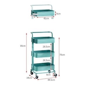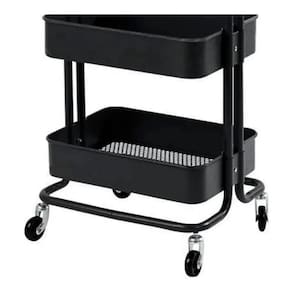Carrinho Multiuso Organizadora 3 Prateleiras Em Aço Cor: Preto O carrinho multiuso com pintura epóxi resistente em aço 5 cores: preto, branco, turquesa, cinza e Rosa possui 3 prateleiras com bordas e fundo de superfície vazada que suportam até 10kg cada prateleira. Seu fundo possui micro furos que eliminam eventuais resíduos líquidos. O carrinho possui alça e rodízios, se tornando prático para locomoção e decorativo em seu ambiente. Ideal para diversos ambientes e para seu negócio como: sala, banheiro, quarto, lavanderia, bar, quarto de criança, salão de beleza, oficina e escritório. Basta montar e começar a organizar.
