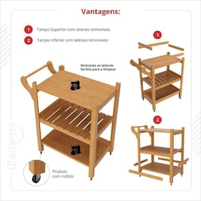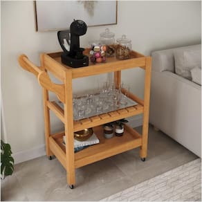 Carrinho Multiuso Server C Rodízios Madeira Natural Leve mais funcionalidade e estilo para o seu espaço com o Carrinho Multiuso Server com Rodízios. Ideal para diversas ocasiões, ele combina praticidade com um design moderno e elegante. Perfeito para ser como cantinho do café, adega, apoio na churrasqueira e muito mais! Destaques do produto: