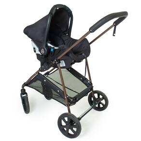 Além da funcionalidade, o Conjunto Napoli Travel System Galzerano Cobre chama atenção pelo acabamento. A combinação da estrutura em tom cobre com o estofado preto cria um visual sofisticado, discreto e fácil de combinar com diferentes estilos de enxoval e acessórios.