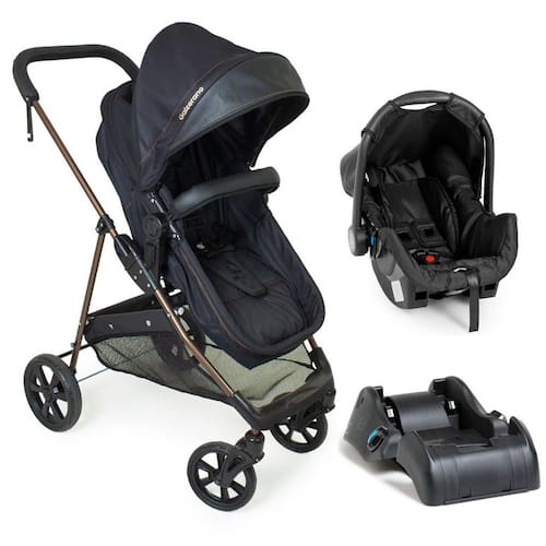 Carrinho de bebê napoli preto/cobre com bebê conforto e base - galzerano