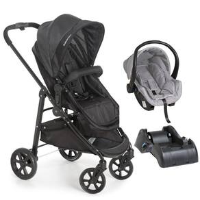 Carrinho Olympus Black com Bebê Conforto Cocoon Cinza e Base
