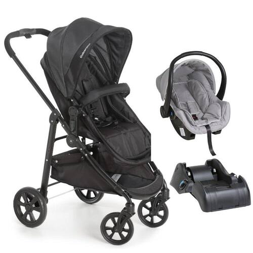 Carrinho Olympus Black com Bebê Conforto Cocoon Cinza e Base