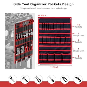 - Material premium: nosso organizador de armazenamento de ferramentas elétricas de garagem feito de ferro de qualidade premium para garantir forte capacidade de carga e durabilidade. Os bolsos organizadores laterais e a bolsa de ferramentas adotam material de lona superior. Forte e durável. Não é fácil ser arranhado. Ideal para garagem, oficina, armazém, casa, loja e assim por diante