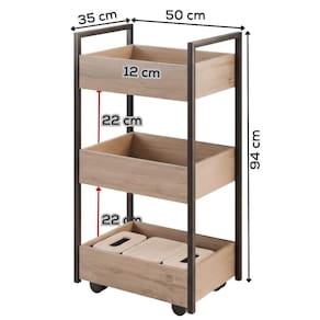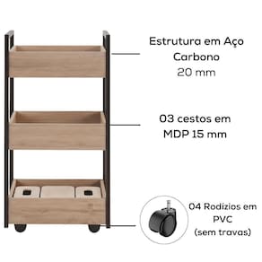 Carrinho Organizador Multiuso 3 Cestos Bp Lais 50 Cm Freijo Eratto Moveis