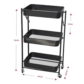 - Composição metal - Rodinhas 360 graus - 3 bandejas 42 x 29cm com - Dispensa montagem - Dimensões 78 x 30 x 45 cm altura x profundidade x largura - Pode ser utilizado também como fruteira Ean: 7899766703880