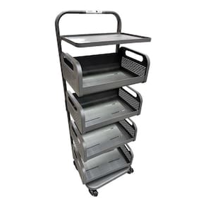 Material: Aço Dimensões: 106 cm (altura) x 37 cm (largura) x 32 cm (profundidade) Cestos: 4 cestos removíveis com altura ajustável Rodízios: Sim Mantenha cada coisa em seu lugar com o Carrinho Organizador Multiuso de Aço. Adquira já o seu e transforme a organização da sua casa!"