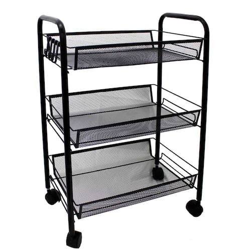 CARRINHO ORGANIZADOR MULTIUSO 3 PRATELEIRAS COM RODINHA- CASITAO Carrinho Organizador possui três prateleiras espaçosas com abertura que facilita colocar e pegar os objetos, além disso, conta com rodinhas com trava para melhor mobilidade e firmeza do produto. O carrinho conta também com pequenos ganchos para pendurar sacolas. As barras e as prateleiras são feitas de Aço, suportam até 25Kg.ESPECIFICAÇÕES:* Estrutura de Aço;* Ganchos para Sacola;* Fácil de montar;* Pode usar em lugares úmidos;* Fácil de limpar;* Rodinhas giro 360° e com trava;* Marca: CASITA.CONTEÚDO DA EMBALAGEM:* 1 Carrinho Organizador desmontado;* 4 Ganchos de Sacola;* Manual de montagem.MEDIDAS DO PRODUTO:* (CxAxL) 44,5x64x27,5cm;IMPORTANTE:Garantia: 3 Meses a partir da data de recebimento - para defeitos de fabricação (não cobrimos mau uso).