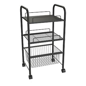 Resumo das Caracteristicas do Produto: - Carrinho de banheiro da marca Sensea - Feito de aco resistente - Dimensoes: 75x32x41,3 cm - Cor preta - Sem gavetas, puxadores e tampo - Com prateleiras - Com quatro rodas de polipropileno na cor preta - Produto acompanha embalagem. Marca: Não Informado
