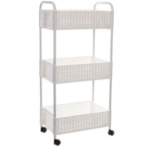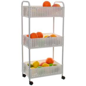 Características: - Organizador com 3 Cestos: Perfeito para separar e organizar diferentes itens, facilitando o acesso e a visualização do conteúdo. - Cor Branco: O design clean e neutro se adapta facilmente a qualquer ambiente, proporcionando um visual elegante e moderno. - Material Durável: Fabricado em aço termoplastificado e plástico, garante resistência e durabilidade ao produto, oferecendo suporte seguro para seus objetos. - Fácil Limpeza: Para manter o carrinho sempre impecável, basta utilizar sabão ou detergente neutro e uma esponja macia, evitando o uso de solventes, objetos cortantes ou abrasivos.
