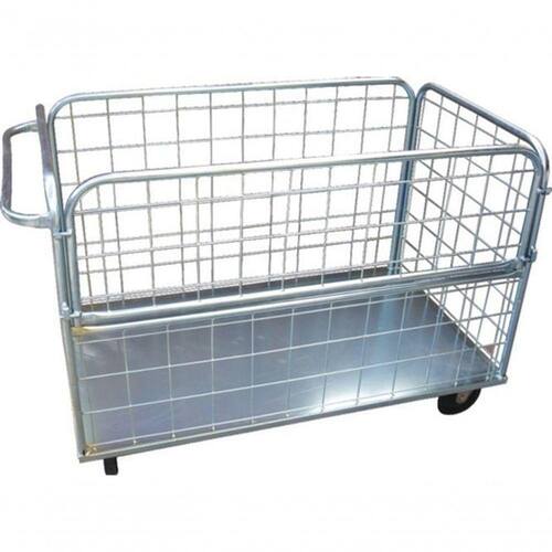 Carrinho Para Condominio Com Fundo Fechado 500l (g4) Carrinho com fundo fechado para transporte de cargas. Carrinho confeccionado em arames de aço carbono SAE 1020 galvanizado, fundo de chapa com 2 pares de rodas giratórias de 6 e 2 pares de rodas fixas de 6. Possui porta lateral que possibilita de forma simples e rápida o abastecimento e reabastecimento do produto.