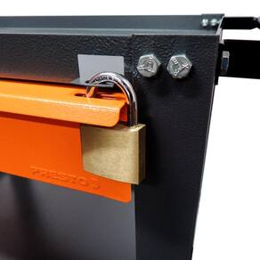 Bandeja reforçada, gaveta com corrediças telescópicas de esferas, com pitão para cadeado resistente. Fácil de transportar em qualquer veículo.