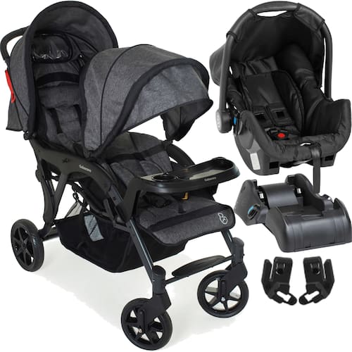 Carrinho de Bebe Gemeos Galzerano Doppio II com Bebe Conforto Grid e Base