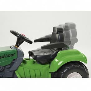 A linha politractor irá dar vida à imaginação das crianças de uma forma única. Seu pequeno vai poder desenvolver a criatividade dele e brincar como um fazendeiro de verdade. O politractor possui exclusivo sistema de tração por dupla correia e seu ajuste do assento é regulável em 3 posições, acompanhando assim o crescimento da criança. Na parte da segurança acompanha o cinto de 3 pontos.