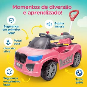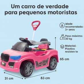 O BM Car Rosa é o veículo perfeito para transformar cada passeio em uma nova aventura!Divertido, seguro e funcional, ele acompanha o crescimento da criança e estimula habilidades essenciais de forma lúdica e prazerosa.