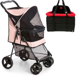 Carrinho de Passeio para Pet Lecco Rosa e Assento para Carro Transpet Big Preto