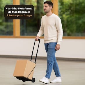 Carrinho Plataforma de Mão Dobrável - Praticidade e Versatilidade!Suporta até 40 kg, ideal para transportar pequenas cargas com facilidadeHastes telescópicas em alumínio com 3 estágios de altura para maior confortoCorda para fixação da carga embutida, garantindo segurança durante o transporteMaterial resistente e durável, com propriedades anticorrosivasPerfeito para uso em construções, armazéns, jardins, supermercados e entregasDobra de forma compacta, facilitando o armazenamento em espaços pequenos
