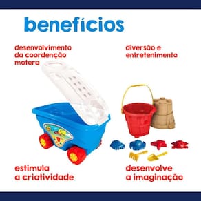 O Carrinho de Praia da GGB é uma opção super divertida para crianças a partir de 3 anos. Este brinquedo é ideal para auxiliar no desenvolvimento da coordenação motora e estimular a imaginação dos pequenos.