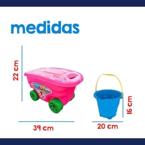 01 Carrinho de Praia 01 Super Balde Castelo 06 Acessórios Características: