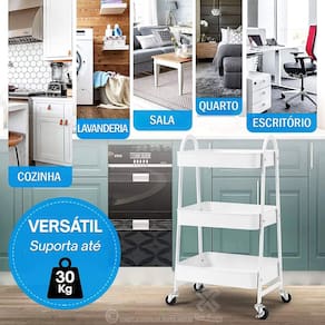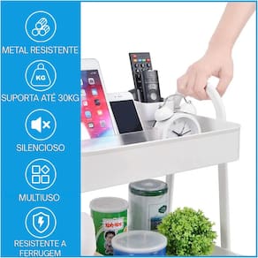 • Organização sem esforço: Transforme o caos em ordem com três níveis espaçosos, concebidos para abraçar seus pertences com distinção. • Mobilidade exclusiva: Desfrute da liberdade de reinventar seus espaços a qualquer momento. As rodinhas discretas deslizam suavemente, concedendo a você o poder de adaptar seu ambiente com um toque de requinte. • Durabilidade inigualável: Construída com metal robusto, esta prateleira não é apenas bela, mas também resistente, suportando o peso de suas ambições organizacionais por muitos anos.