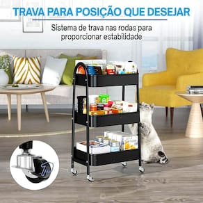 • Organização sem esforço: Transforme o caos em ordem com três níveis espaçosos, concebidos para abraçar seus pertences com distinção. • Mobilidade exclusiva: Desfrute da liberdade de reinventar seus espaços a qualquer momento. As rodinhas discretas deslizam suavemente, concedendo a você o poder de adaptar seu ambiente com um toque de requinte. • Durabilidade inigualável: Construída com metal robusto, esta prateleira não é apenas bela, mas também resistente, suportando o peso de suas ambições organizacionais por muitos anos.