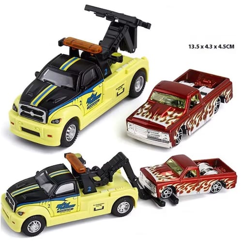 Funcionalidade Realista: A plataforma do reboque é projetada para transportar outros veículos em miniatura (1un inclusa), adicionando uma camada extra de interatividade e realismo. As crianças podem carregar e descarregar seus carrinhos favoritos, criando cenários de resgate, transporte e muitas outras histórias.