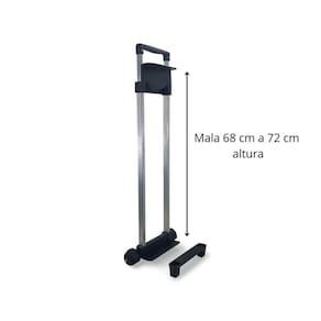 Carrinho rodinha troca mala viagem grande 70 cm Cor: Preto Suporte com rodinhas para em mala de viagem 70 cm de altura Suporte com Haste de alumínio e rodinhas duplas em cada lado - Indicada para em mala de viagem - Instalação deverá ser feita por um profissional sapateiro , necessita ser arrebitado - Modelo a ser escolhido é conforme a altura da mala nas costas podendo variar até 1 cm. Modelo 70 cm: - medidas totais: 75 cm altura haste encolhida x 31 cm largura rodinha a rodinha , encaixe da mala 70 cm, haste esticada 100 cm - peso do produto 836 gramas - Acompanha pé frontal - Parafusos/ arrebites não incluso Marca: Não Informado