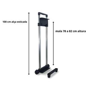 Suporte com rodinhas para em mala de viagem 80 cm de altura Suporte com Haste de alumínio e rodinhas duplas em cada lado - Indicada para em mala de viagem - Instalação deverá ser feita por um profissional sapateiro , necessita ser arrebitado - Modelo a ser escolhido é conforme a altura da mala nas costas podendo variar até 1 cm. Modelo 80 cm: - medidas totais: 83 cm altura haste encolhida x 31 cm largura rodinha a rodinha , encaixe da mala 80 cm, haste esticada 102 cm - peso do produto 836 gramas - Acompanha pé frontal com distancia nos furos de 11cm, Medidas pé: 23,5 cm largura x 4,5 cm de altura x 3,5 cm lateral - Distância entre as perfurações na base superior de 6,5 cm e base inferior de 13,5cm do suporte - Parafusos/ arrebites não incluso Marca: Mobfort