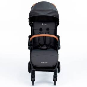 Tudo isso aliado a itens de segurança: o carrinho possui amortecedores nas 4 rodas, que torna o passeio em qualquer superfície mais suave, e também conta com cinto de segurança de cinco pontos, que se ajusta tanto na largura quanto na altura. O freio do carrinho é centralizado, o que ajuda na estabilidade, e as rodas dianteiras tem um giro de 360.