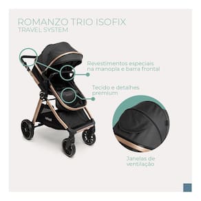 Você sabia que é possível ter estilo, conforto e praticidade em um único carrinho de bebê? Conheça o Carrinho Travel System Romanzo Trio Isofix, a escolha perfeita para papais que querem o melhor para seus pequenos!