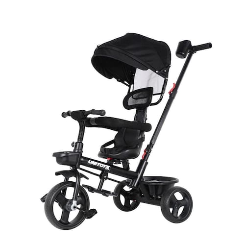 -Assento giratório 360°: mais interatividade e praticidade para os pais. -Capota removível: protege contra o sol e pode ser retirada quando desejado. -Cinto de segurança e proteção lateral: garante mais segurança durante o uso. -Empurrador dirigível: controle total dos pais na direção. -Assento anatômico com apoio para os pés: conforto ideal em todas as fases. -Cestos dianteiro e traseiro: espaço para brinquedos ou acessórios do bebê. -Pedais e rodas robustas: diversão com estabilidade e durabilidade. -Porta-copos prático: para manter a bebida sempre à mão. -Suporta até 25 kg -Recomendado para crianças a partir de 12 meses -Marca: Unitoys -Modelo: Confort -Cor: Preto ou Branco -Garantia: 3 meses
