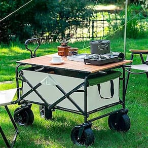 Camping e Piqueniques: Use o carrinho para transportar barracas, cadeiras, geladeiras portáteis e outros itens essenciais para o camping ou piqueniques. A mesa destacável serve como espaço para preparar refeições ou jogar durante suas aventuras.