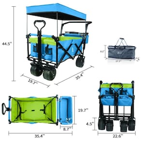 Carrinho Vagão Dobrável Multifuncional com Dossel Removível e Armazenamento, Napfox, Azul e Verde
