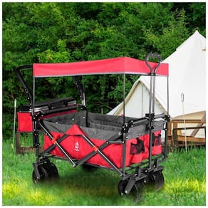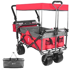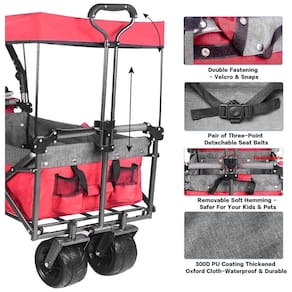 Carrinho Vagão Dobrável Multifuncional com Dossel Removível e Armazenamento, Napfox, Vermelho